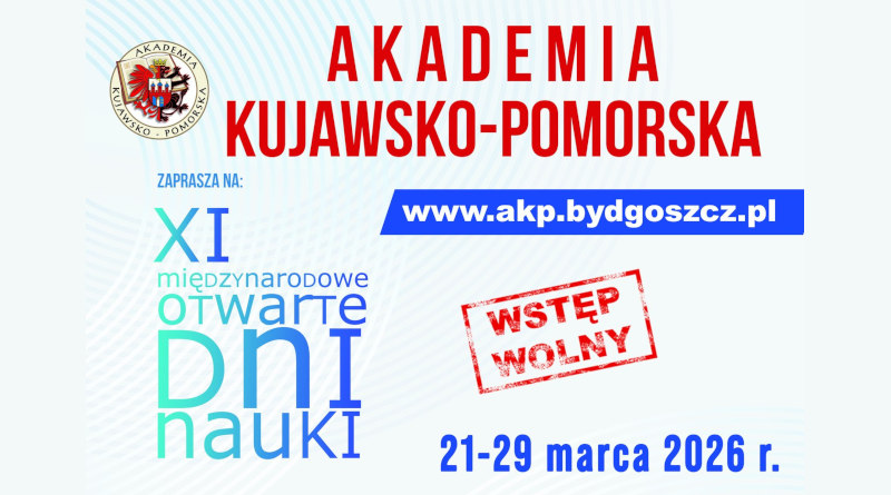Akademia Kujawsko-Pomorska w Bydgoszczy w dniach 21-29 marca 2026 roku zaprasza na XI Międzynarodowe Otwarte Dni Nauki.