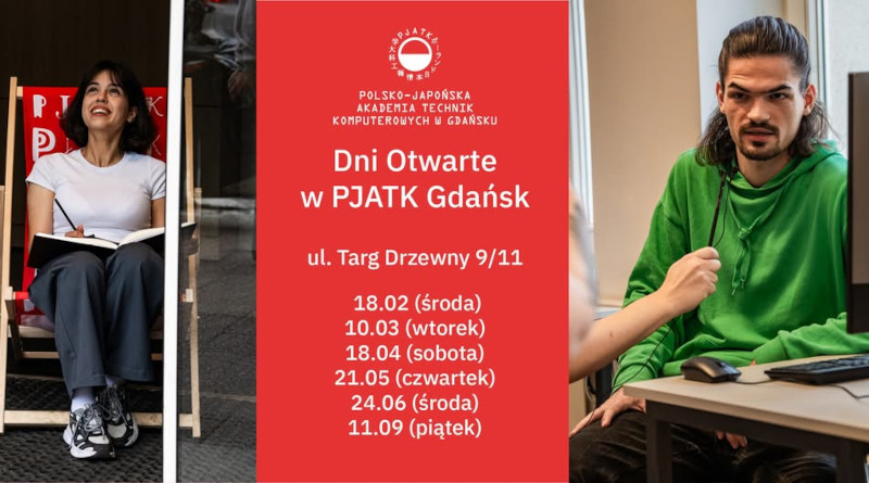 Polsko-Japońska Akademia Technik Komputerowych w Gdańsku zaprasza na Dni Otwarte PJATK 2026. Najbliższe spotkanie w środę 18 lutego!