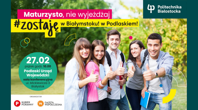 Politechnika Białostocka w piątek 27 lutego 2026 roku zaprasza na spotkanie w Podlaskim Urzędzie Wojewódzkim w ramach akcji "Zostaję w