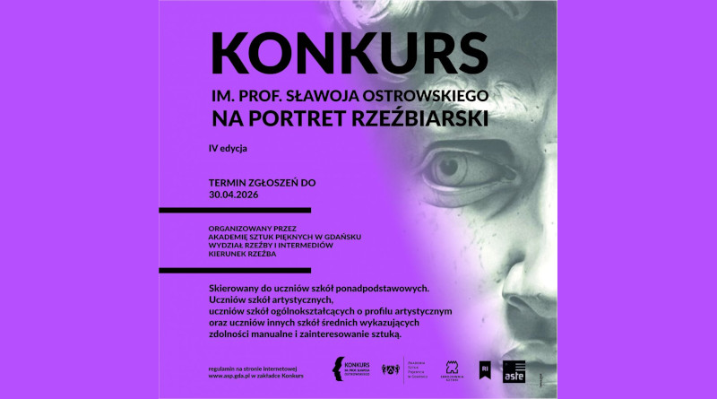 Konkurs Rzeźbiarski im. prof. Sławoja Ostrowskiego – IV edycja 2026: Akademia Sztuk Pięknych w Gdańsku, Wydział Rzeźby i Intermediów, Kierunek Rzeźba, zapraszają uczniów szkół ponadpodstawowych artystycznych, szkół ogólnokształcących o profilu artystycznym oraz uczniów innych szkół średnich wykazujących zdolności manualne i zainteresowanie sztuką do wzięcia udziału w konkursie!