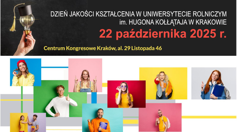 Uniwersytet Rolniczy w Krakowie w środę 22 października 2025 roku zaprasza wszystkich zainteresowanych na Dzień Jakości Kształcenia. W programie między