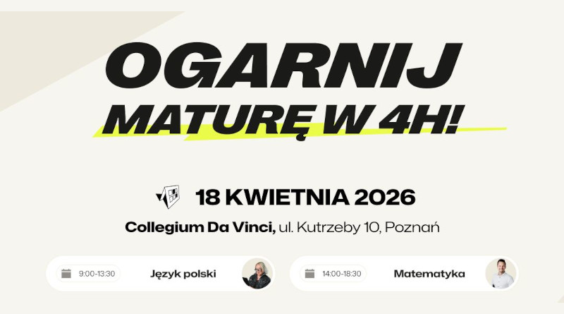Matura zbliża się wielkimi krokami, a stres zaczyna brać górę? Spokojnie. Już 18 kwietnia 2026 roku mury Collegium Da Vinci w Poznaniu zamienią się w centrum najbardziej intensywnych przygotowań egzaminacyjnych w regionie. To świetna okazja, by w jeden dzień uporządkować swoją wiedzę.